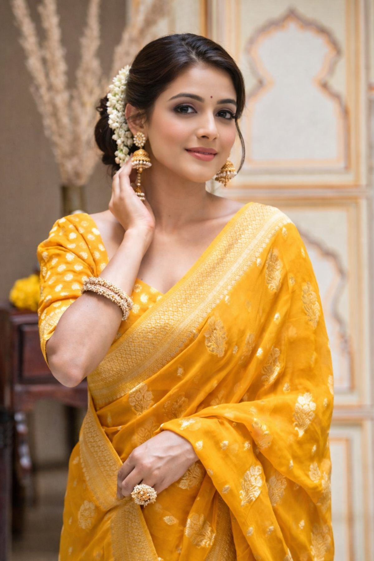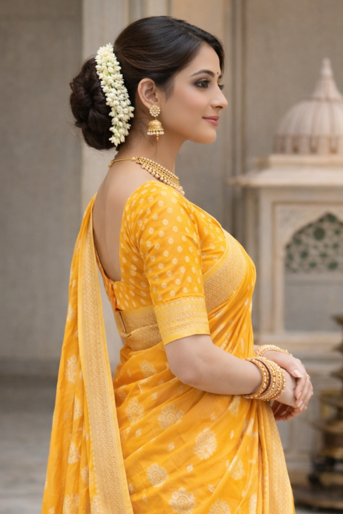• Work: Allover Golden Zari Butti with Rich Woven Border