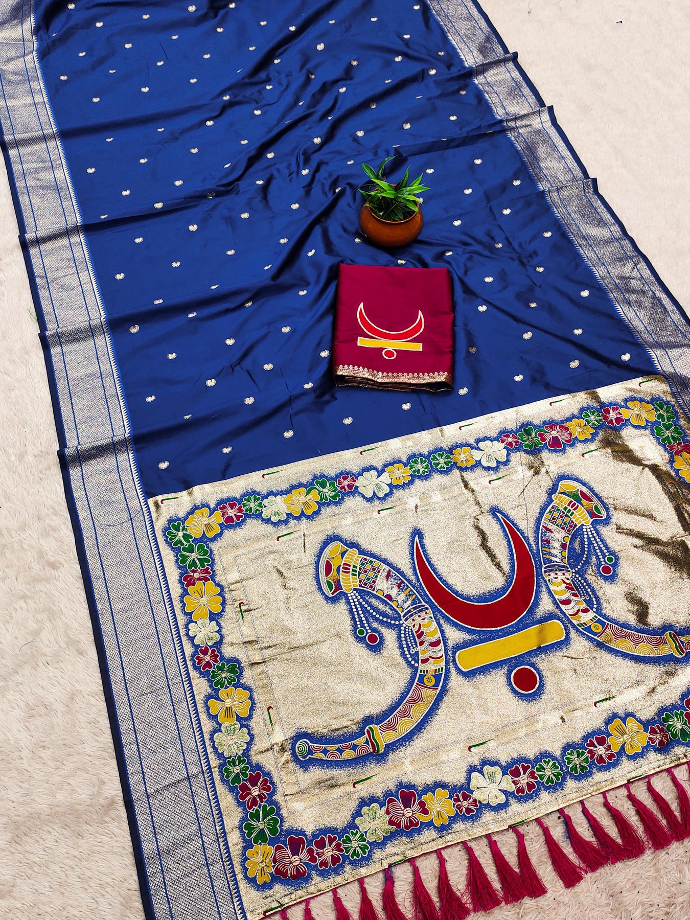 Rajtmata Royal Blue Paithani Silk Saree with Traditional Zari Border & Peacock Motif Pallu